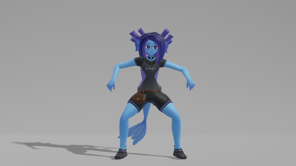 This is Atena, a sea creature, fish-like person of ambiguous gender. Made from scratch for VRChat's Avatars For Everyone Jam. You can find a public version of this avatar in the public row of the avatar menu right now (or here)!