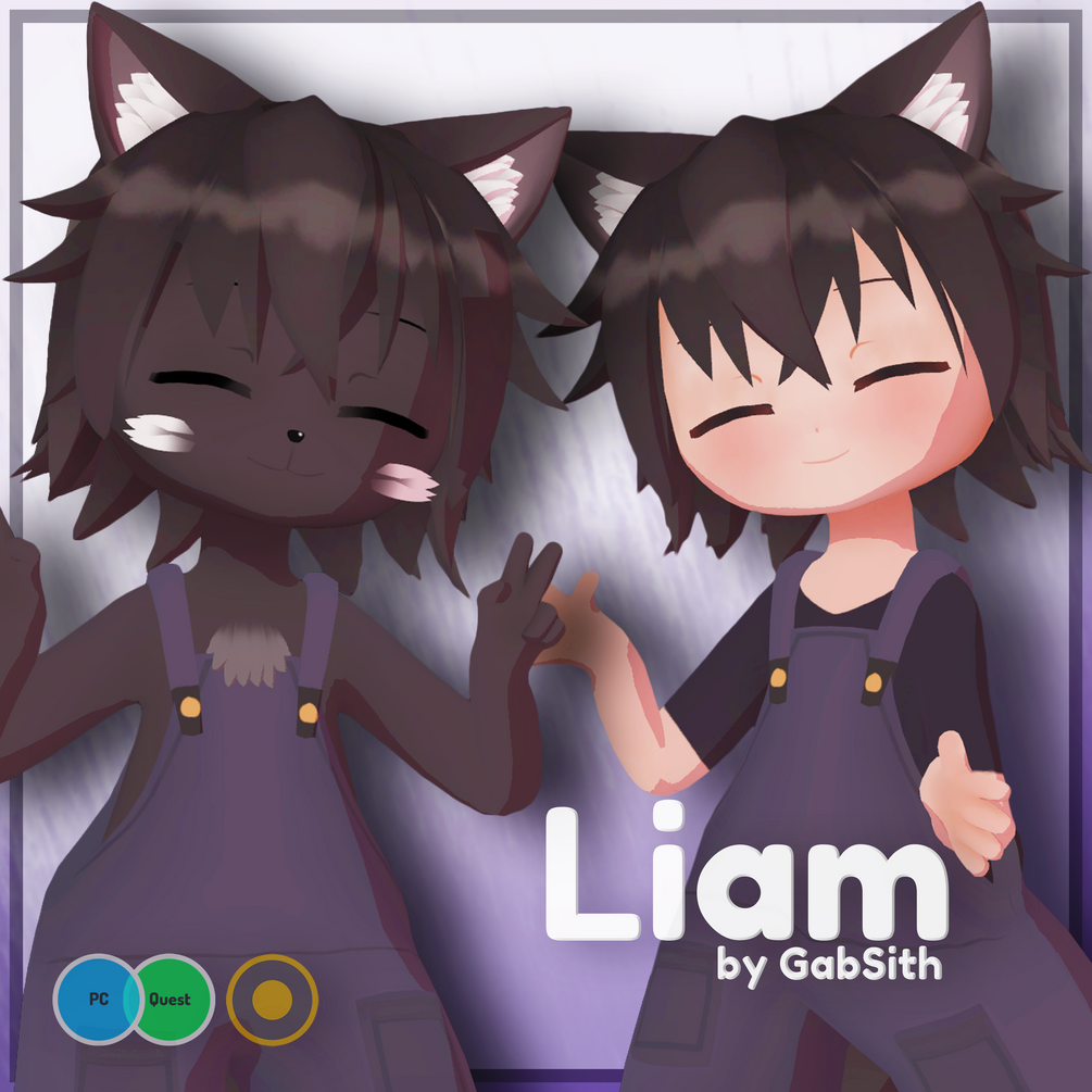 This is Liam, a werewolf chibi that has learned to change between forms at any time! Made entirely from scratch, no external assets were used (except for poiyomi's shader).